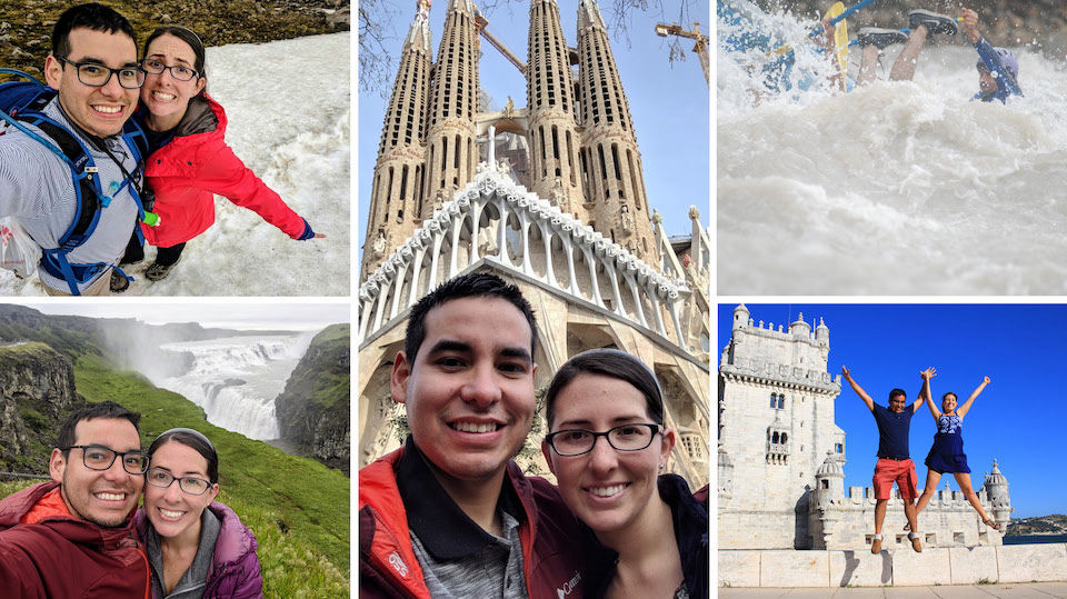 We absolutely love to travel internationally and nationally. These are a few pictures from our trips to Iceland, Spain, and Costa Rica (yes, those are Ricardo's shoes as we capsized whitewater rafting).